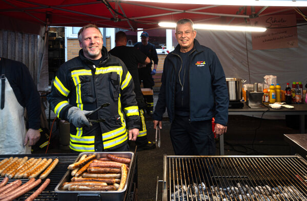 Würstchen, Pommes und Getränke gab es reichlich und die Kameraden der Feuerwehr hatten mit ihrem großem Grill die Lage gut im Griff. Keiner musste länger als 10 Minuten auf die Bratwurst, die Brat-Currywurst oder den Schinkengriller warten.