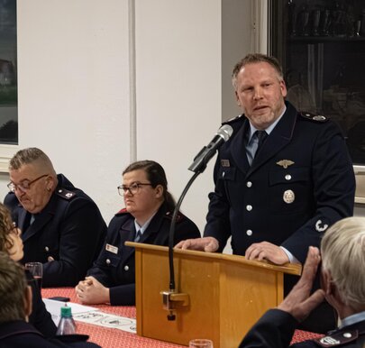 Einleitung der Ansprache vom Ortsbrandmeister Fabian Lehrke