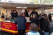 Würstchen, Pommes und Getränke gab es reichlich und die Kameraden der Feuerwehr hatten mit ihrem großem Grill die Lage gut im Griff. Keiner musste länger als 10 Minuten auf die Bratwurst, die Brat-Currywurst oder den Schinkengriller warten.
